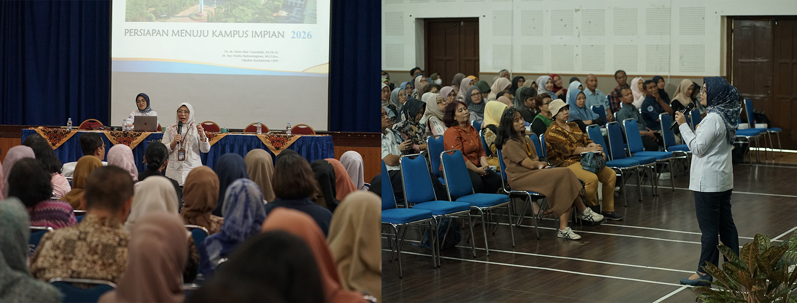 Kegiatan sosialisasi menghadirkan narasumber yang inspiratif dan kompeten di bidang pendidikan tinggi, yaitu Dr. Iva Ariani, S.S., M.Hum., Wakil Dekan PPMKSA Fakultas Filsafat Universitas Gadjah Mada (UGM) sekaligus alumni SMA Negeri 6 Yogyakarta angkatan 1994, serta Dr. dr. Atien Nur Chamidah, M.Dis.St., Wakil Dekan Bidang Akademik, Kemahasiswaan, dan Alumni Fakultas Kedokteran Universitas Negeri Yogyakarta (UNY).