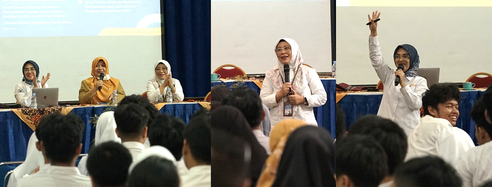 Kegiatan sosialisasi menghadirkan narasumber yang inspiratif dan kompeten di bidang pendidikan tinggi, yaitu Dr. Iva Ariani, S.S., M.Hum., Wakil Dekan PPMKSA Fakultas Filsafat Universitas Gadjah Mada (UGM) sekaligus alumni SMA Negeri 6 Yogyakarta angkatan 1994, serta Dr. dr. Atien Nur Chamidah, M.Dis.St., Wakil Dekan Bidang Akademik, Kemahasiswaan, dan Alumni Fakultas Kedokteran Universitas Negeri Yogyakarta (UNY).